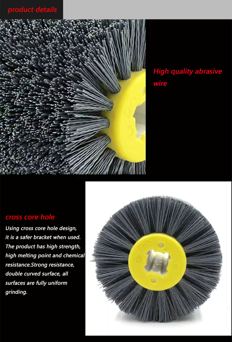 This abrasive wire drawing wheel brush is made of high-density silicon carbide abrasive wire, which is high strength, high melting point, strong chemical and good wear . It can deal with the processing needs of different surfaces.