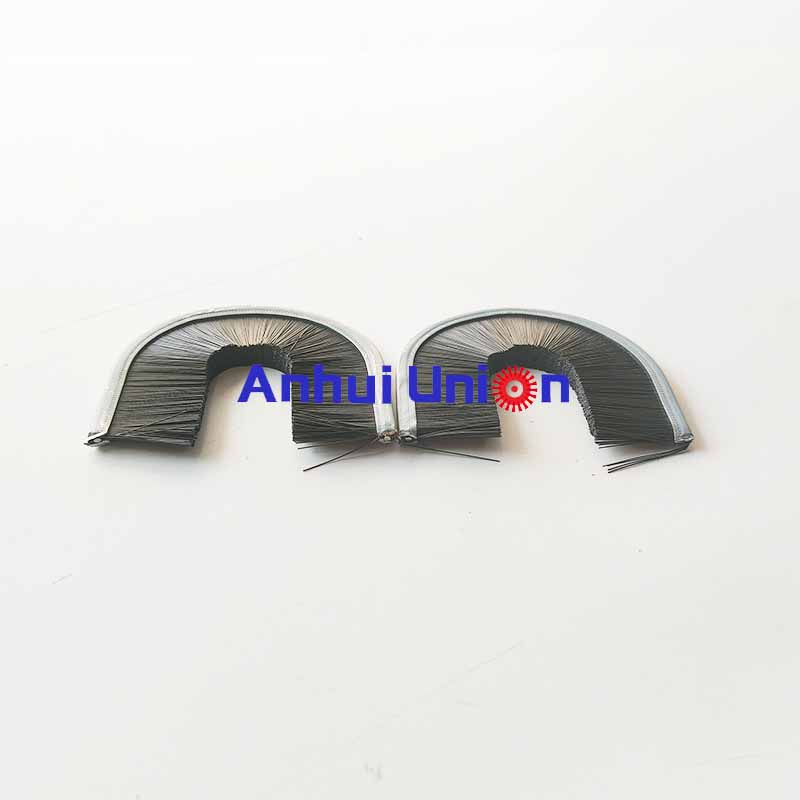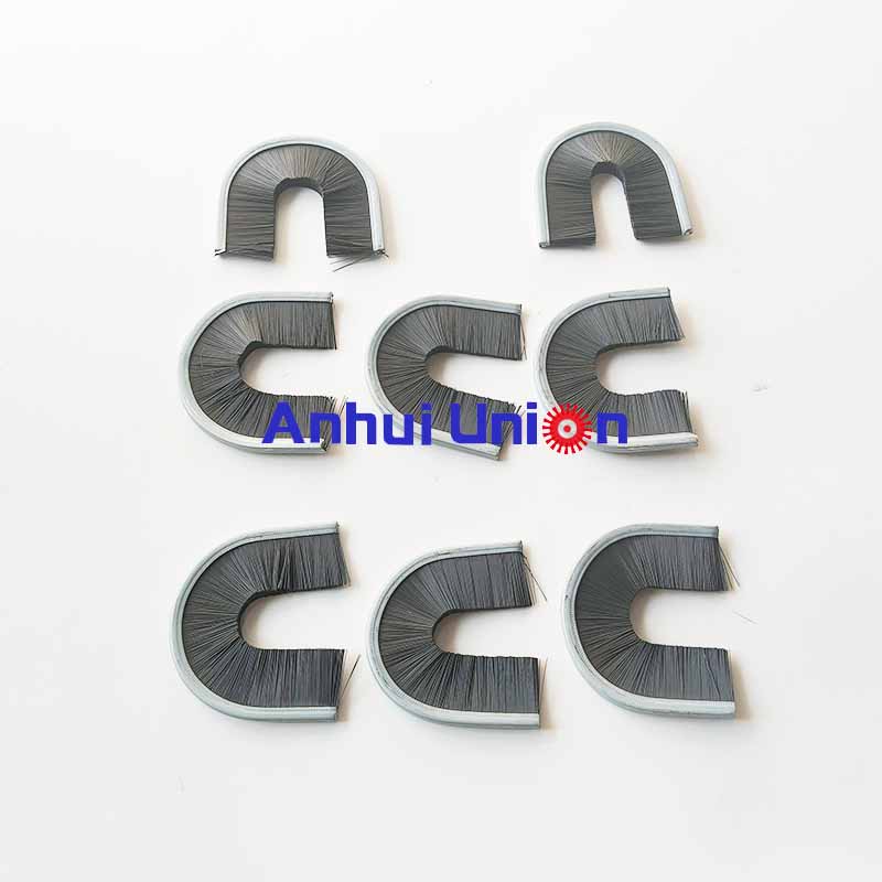Inside Curve brushes have a metal channel along the outside diameter and filaments are pointed inward. The curved brush, or partial inside disk brush, can be made in any length required. Sometimes the metal channel length is specified in degrees of the circle or in actual measured brush length around the outside diameter.